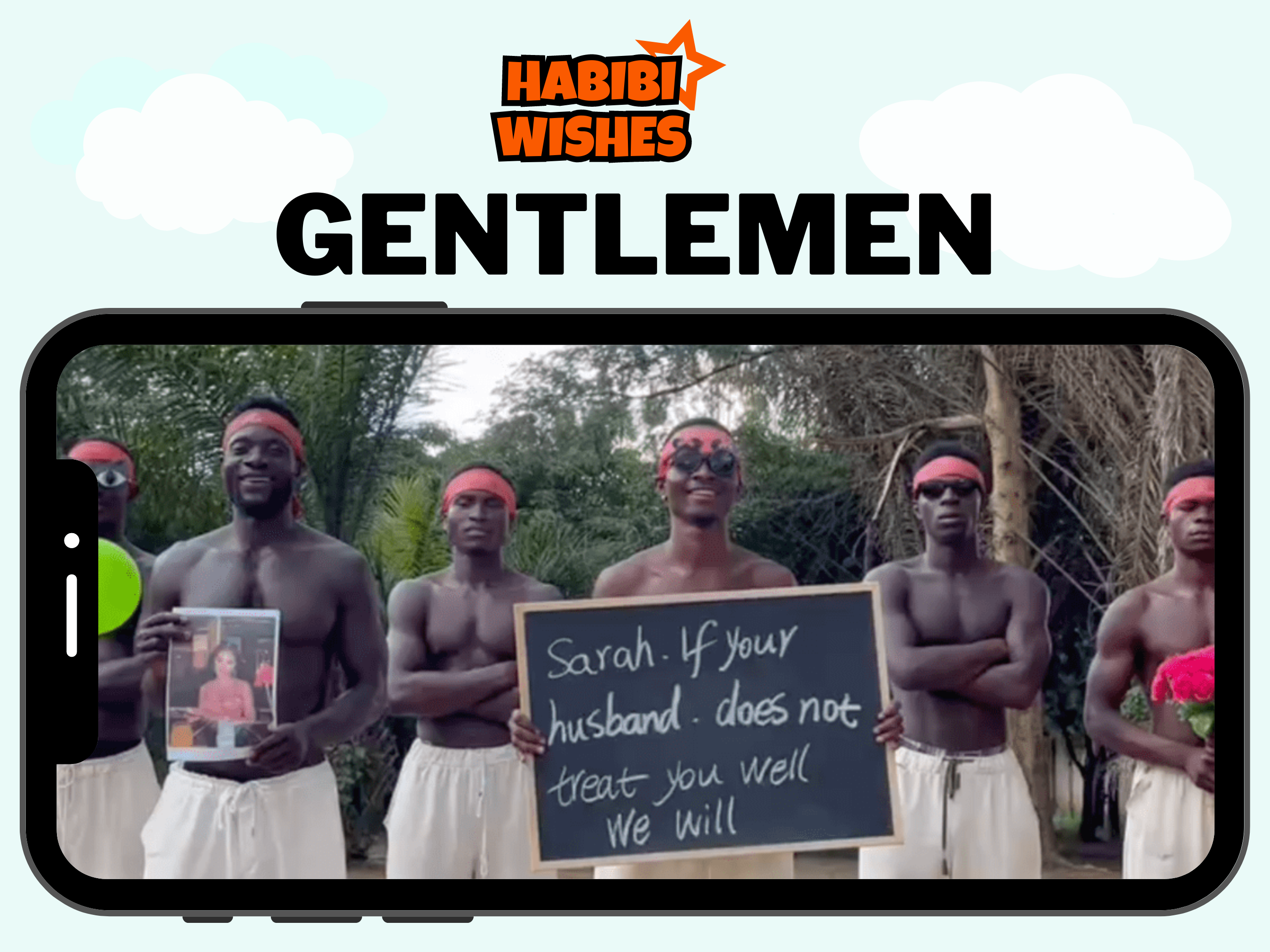 1. The regular video package includes music of our choice (custom music is available for an extra cost), your custom message said out loud, and dancing.